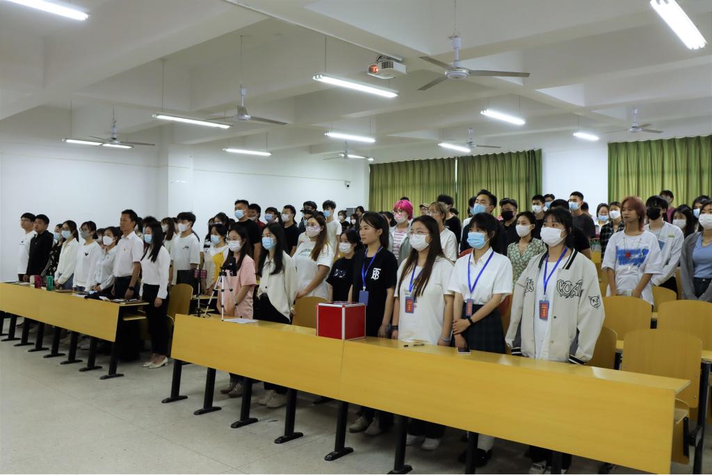 随后,全体起立,国歌奏响,众人齐唱,在激昂有力的歌声中70net永乐高学生党支部换届选举大会正式开始。
