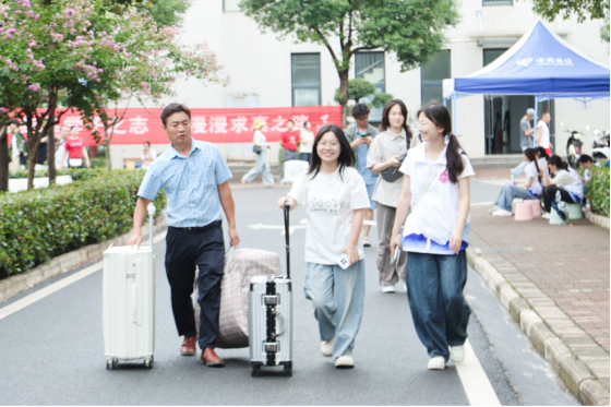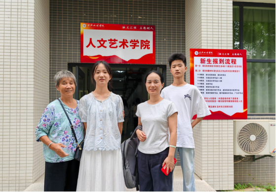 迎新现场处处可见温馨感人的场景。新闻采编专业的新生陈馨钰在家人的陪伴下前来报到,作为家里的第一名大学生,奶奶、妈妈和弟弟三代人专程相送,共同见证这个重要的时刻。