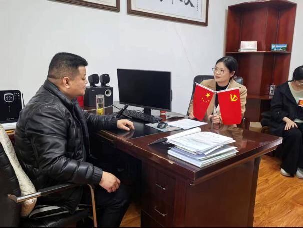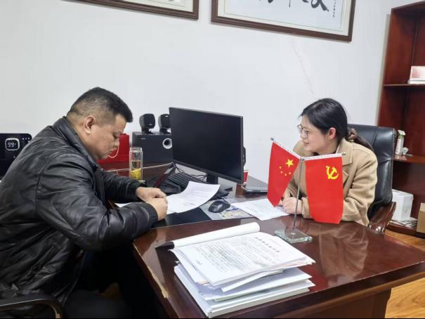 汉语言文学专业负责人吕玲(右)与下畈小学杨校长(左)进行沟通