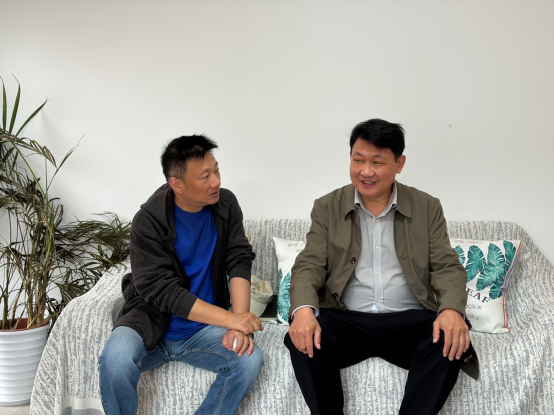 刘总(左)与邓正兵教授(右)在挂牌仪式现场交流。