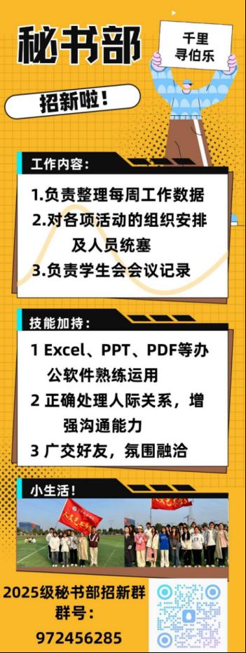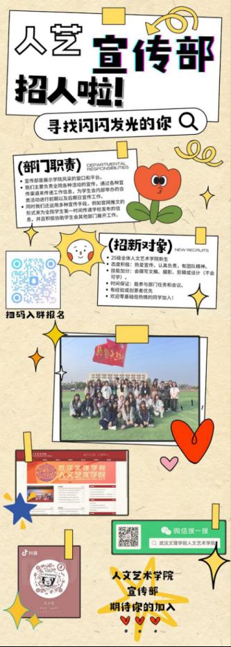 期待热爱宣传,有经验或创意者,以及想要学习宣传技能的同学,欢迎零基础但热情的同学加入!