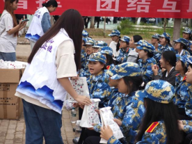 军训间隙休息时,是学生会部长送大礼包的“黄金时段”。他们抱着重礼包穿梭于各训练场。见新生列队走来,便上前递礼包,新生接过礼包后难掩期待,忍不住当场拆开,脸上满是惊喜。这一过程既让新生感受到物质关怀,也缓解了他们初入校园的陌生感和军训疲惫。