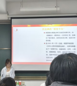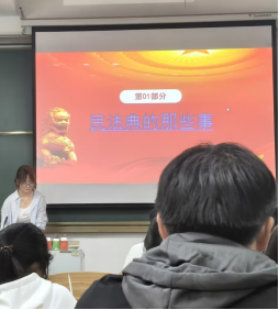 在各班级的活动现场,学院青年志愿者团队成为法治知识传播的重要力量。志愿者们提前准备了丰富的法治宣传资料,内容涵盖《民法典》中与学生日常生活密切相关的物权、合同、人格权等重点章节,还包含校园安全、网络诈骗防范、消费者权益保护等实用法律知识。在宣讲过程中,志愿者们不仅向过往学生发放宣传资料,还主动走上前与学生面对面交流,用通俗易懂的语言解读法律条文,结合真实案例分析常见的法律风险场景——例如针对学生群体易遭遇的网络借贷陷阱、虚假兼职诈骗等问题,详细讲解如何运用法律武器维护自身合法权益,引导学生树立“学法懂法是前提,守法用法是关键”的法治观念。