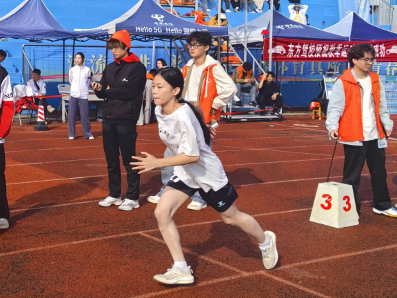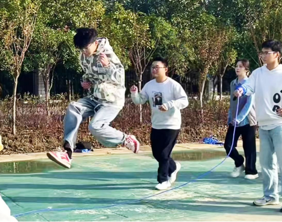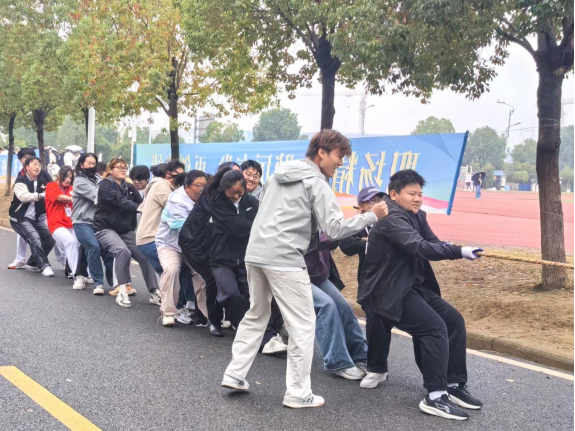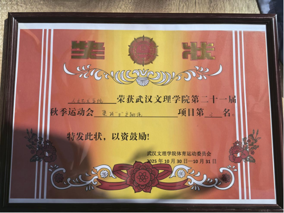 运动的魅力,在于个人的卓越,更在于团队的共鸣。在紧张刺激的4x100米接力赛中,那根小小的接力棒,传递的是无间的信任与默契,是四个人为同一个目标奋力向前的集体荣誉感。而在“两人三足”、集体“8”字跳绳等趣味项目中,同学们更是将协作精神与无限创意展现得淋漓尽致——其中,在集体“8”字跳绳项目中斩获第三名以及拔河项目中斩获第二名的佳绩,便是对团队默契与辛勤付出的最佳证明。赛场边,那一声声独具文采的加油呐喊,一块块精心绘制的助威画板,无不透露着人文学子特有的细腻与热情,构成了看台上一道温暖的风景线。