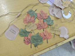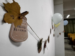 诗会上,大家进行了头脑风暴,在便签上写下了灵感,随后大家互相分享了灵感,在创作时间里,参加活动的同学们纷纷在便签上写下自己的作品。一片片“枫叶”上写满同学们充满想象力,充满爱的诗句。经过活动现场工作人员的随机搭配,文采飞扬的诗句组成了一首又一首的诗歌,社团的工作人员们将这些诗用夹子夹好,挂在了活动的现场。