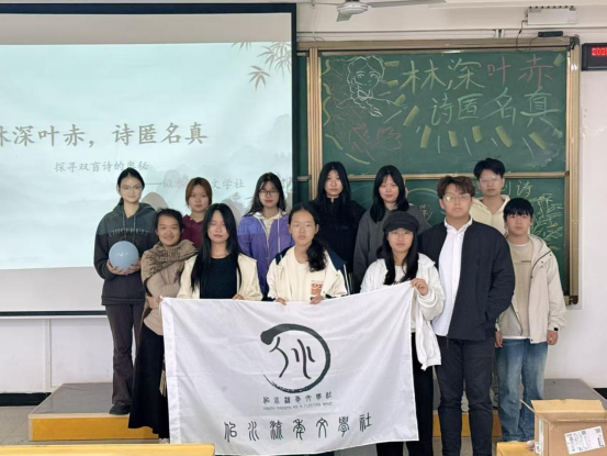 活动结束后,参与组织本次活动的似水流年文学社的社员在活动教室一起合了影,也标志着本次双盲创诗活动的圆满结束。