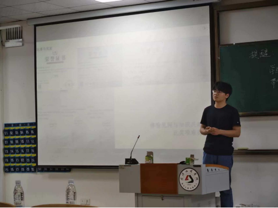 宣讲会上,三位学长学姐依次登台,结合自身经历倾囊相授。汪轩仪学姐从专业学习方法切入,分享了如何高效利用课堂与课余时间,在理论学习与实践操作中找到平衡;彭爱英学姐则聚焦目标规划与心态调整,鼓励大家尽早明确方向,不被外界杂音干扰,脚踏实地走好每一步;侯方域学长结合自己在志愿活动中的经验,生动讲述了机会如何垂青有准备的人,并提醒同学们珍惜每一次锻炼自己的机会。他们的分享既有高屋建瓴的思路,又有可落地的具体建议,干货满满,赢得现场阵阵掌声。