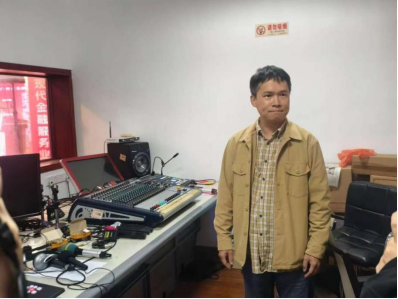 (司徒俊杰副主任给同学们介绍导播室设备使用方法)