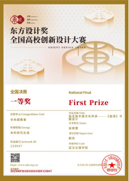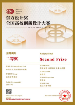 其中孙诗桐同学的作品《荆楚文旅》和吴雨慧同学的作品《面语》构思精巧,将中国传统文化与现代创意设计完美融合,赢得了评委的高度评价,获得了国家级一等奖。此外,李欣月同学的作品《浮玄傩梦》、龚小倩同学的作品《福佑到》等获得国家级二等奖,也均在创意性、艺术性和社会价值上展现了极高的水准。