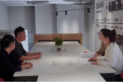 广东精鹰传媒科技集团股份有限公司副总裁、广东精鹰影视制作有限公司总经理谭志新、影视制作部总监胡俊杰对我院一行的到访表示热烈欢迎。首先胡俊杰总监细心接待了调研组老师,并全面介绍了公司的业务领域、发展变革历程及作品成果。随后的座谈会上,谭志新总经理详细分享了企业近期项目开展情况及典型经验,并具体介绍了企业团队分工、岗位设置以及人才需求等内容。他们高度认可我院的应用型人才培养模式,并表达了加强与学院合作、共同培养网络视听人才的意愿。毛蓉老师介绍了新闻传播系专业建设、学生发展等方面的情况,并希望通过永乐高,为学生提供更多贴近行业前沿的实习岗位和就业机会。