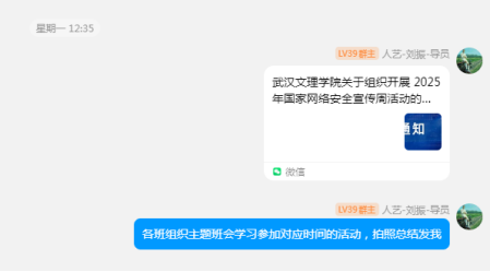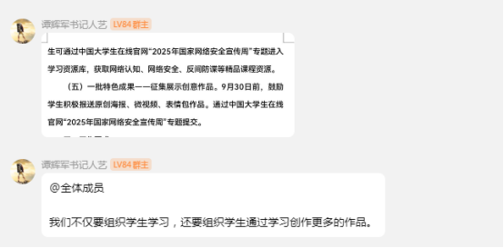 学院高度重视本次网络安全宣传周活动,第一时间传达学校通知精神,将活动纳入秋季学期师生安全教育总体安排。通过学院文件通知、辅导员班级群等渠道,明确活动时间(9月15日- 21日)、核心内容及参与要求,覆盖22-25级所有班级,确保师生全员知晓、积极参与,为活动开展奠定坚实组织基础。