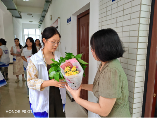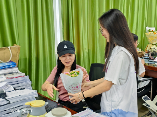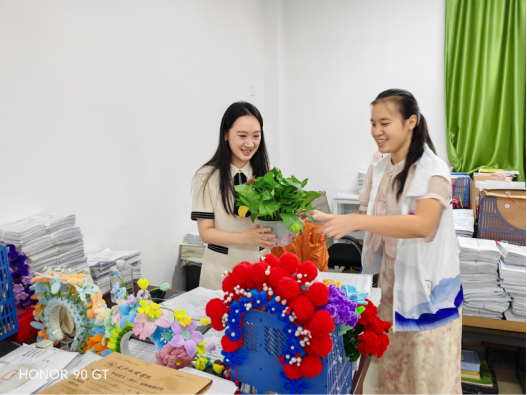 与此同时,学院“文韵传承” 志愿队以 “绿色感恩” 为主题,发起了一场别出心裁的教师节感恩活动。这支由热爱传统文化的大学生组成的志愿队,始终秉持 “尊师重道” 的传统美德,此次特意挑选象征生机与希望的绿植作为节日礼物,为老师们送上独特祝福。