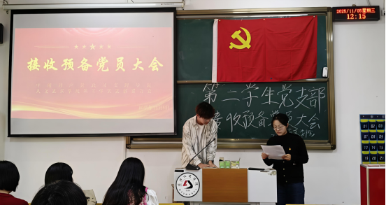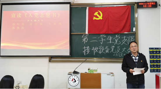 为进一步加强党员队伍建设,注入新鲜血液,2025年11月5日12:10,70net永乐高第二学生党支部在4-103教室召开接收预备党员大会。本次大会特邀70net永乐高党总支部书记谭辉军,70net永乐高第二学生党支部委员以及预备党员们参加,会议依规讨论拟接收预备党员申请。